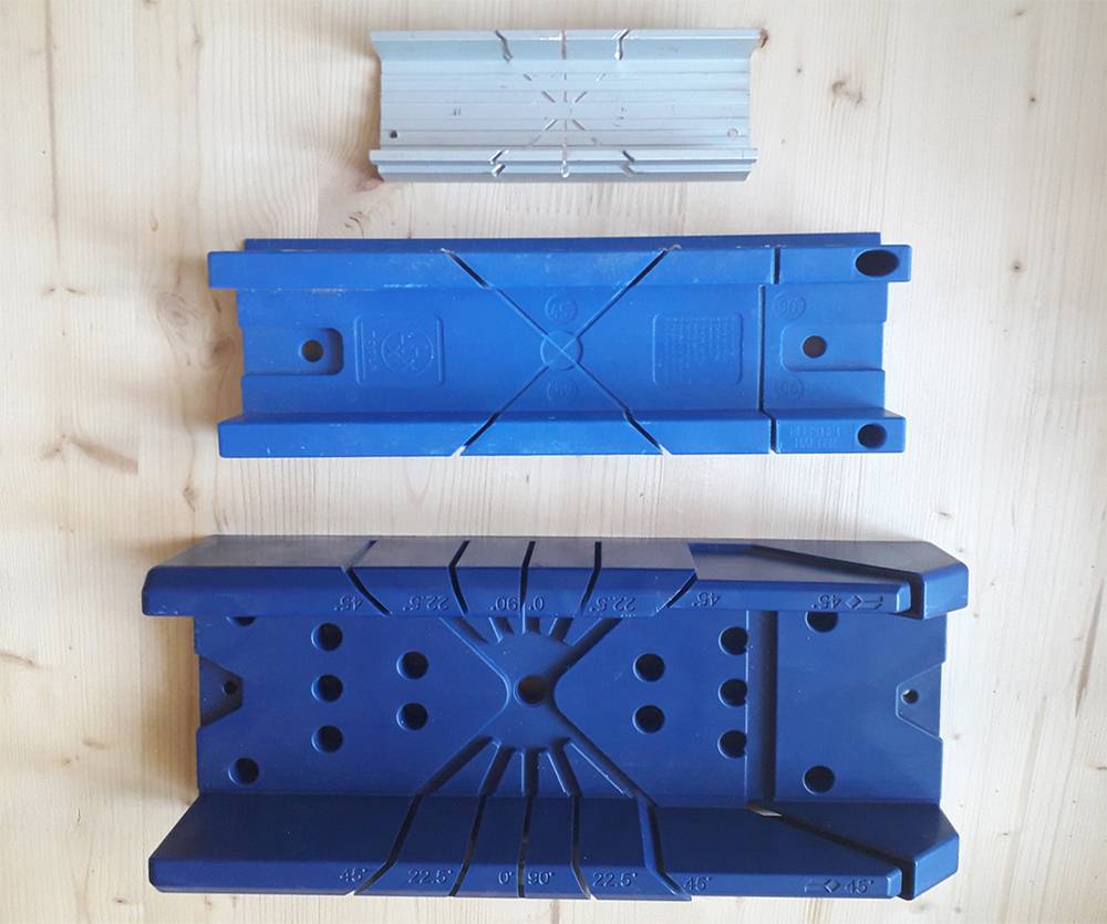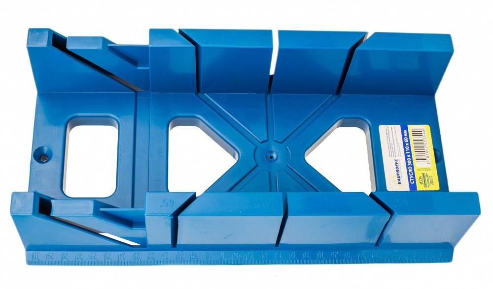 Чтобы процесс прошел быстро и просто, применяют такой инструмент, как стусло. Это шаблон, который имеет П-образный вид. В его боковых стенках есть шаблоны прорезей. Они имеют разный угол наклона.