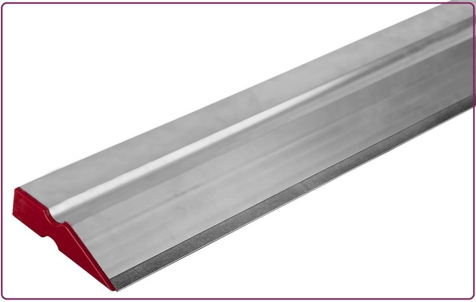 - Когда линолеум аккуратно разложен и отлежался, нужно взять хорошее, тяжелое строительное правило трапецию, наподобие того, которое на рисунке ниже. И плотно прижать его к тому месту, где линолеум идет внахлест.