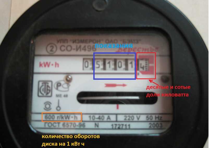 Обычно на табло индукционного счетчика есть 5, 6 или 7 цифр. В большинстве случаев последняя цифра, реже — две, отделены запятой, цветом или отличаются по размеру. Все цифры после запятой при снятии показаний не учитываем. Они показывает десятые и сотые доли киловатта и не должны учитываться