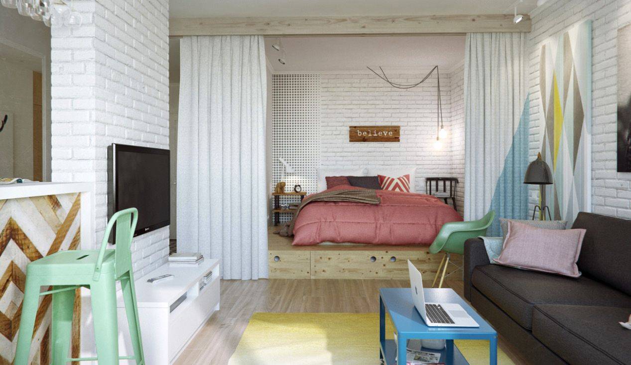 10 примеров дизайна интерьера однокомнатной малогабаритной квартиры студии