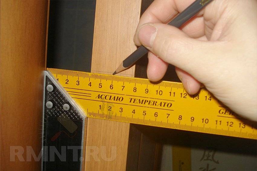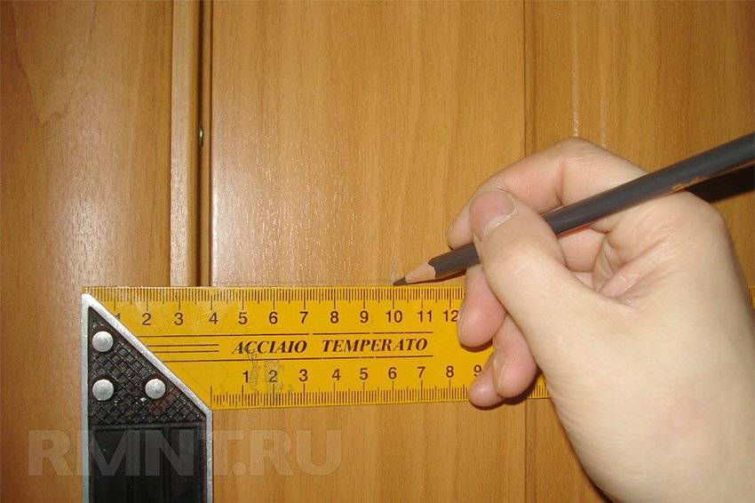 Если схемы нет, то можно разметить вручную. Для этого ставим отметку на расстоянии 60 мм от края двери.