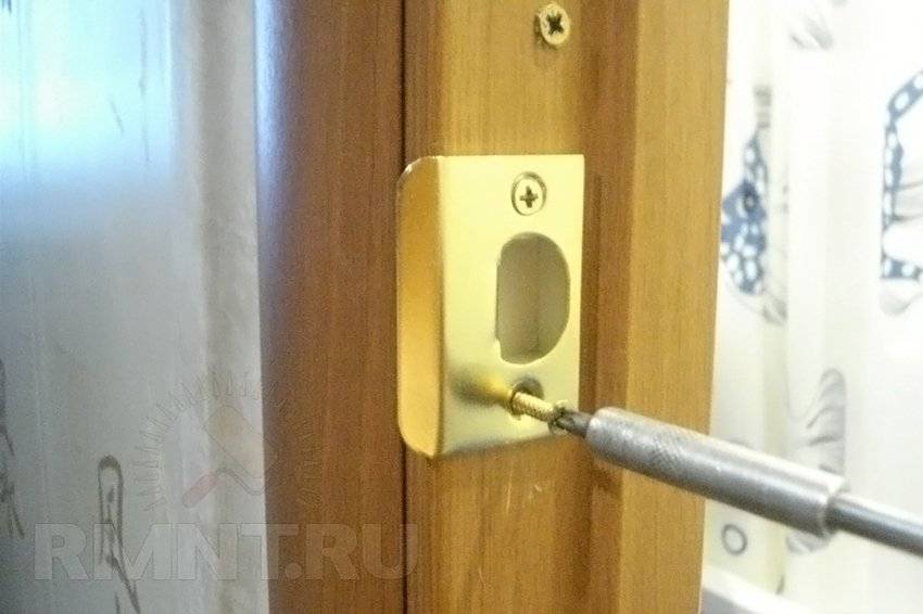 Ответную планку закрепляют при помощи шурупов (идут в комплекте поставки). Затем проверяют качество работы замка. Многие ответные планки имеют отогнутую деталь, с помощью которой можно уплотнить язычок в гнезде, чтобы запертая дверь не болталась и не дребезжала.