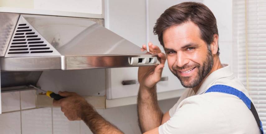 Иногда без участия приглашенных мастеров не обойтись, если требуется выполнить скрытый монтаж воздуховода, или конфигурация кухни слишком сложна.