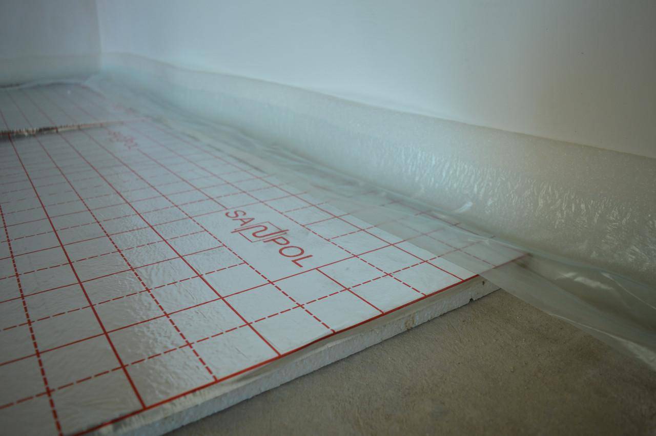 Что касается полов, то тут алгоритм такой же, только после крепления плит пенопласта необходимо нанести стяжку, а уже после этого думать над устройством теплых полов и отделке поверхности.