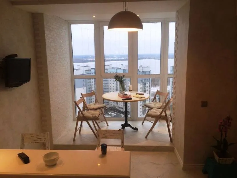 Следует учесть, что такой балкон позволяет не только вам наслаждаться отличным видом, но и посторонние могут отлично видеть все, что происходит в помещении. Поэтому можно воспользоваться тонировочной пленкой или современными жалюзями, или шторами. Они позволяют не только скрыть происходящее в помещении, но и летом спасут от невыносимого зноя.