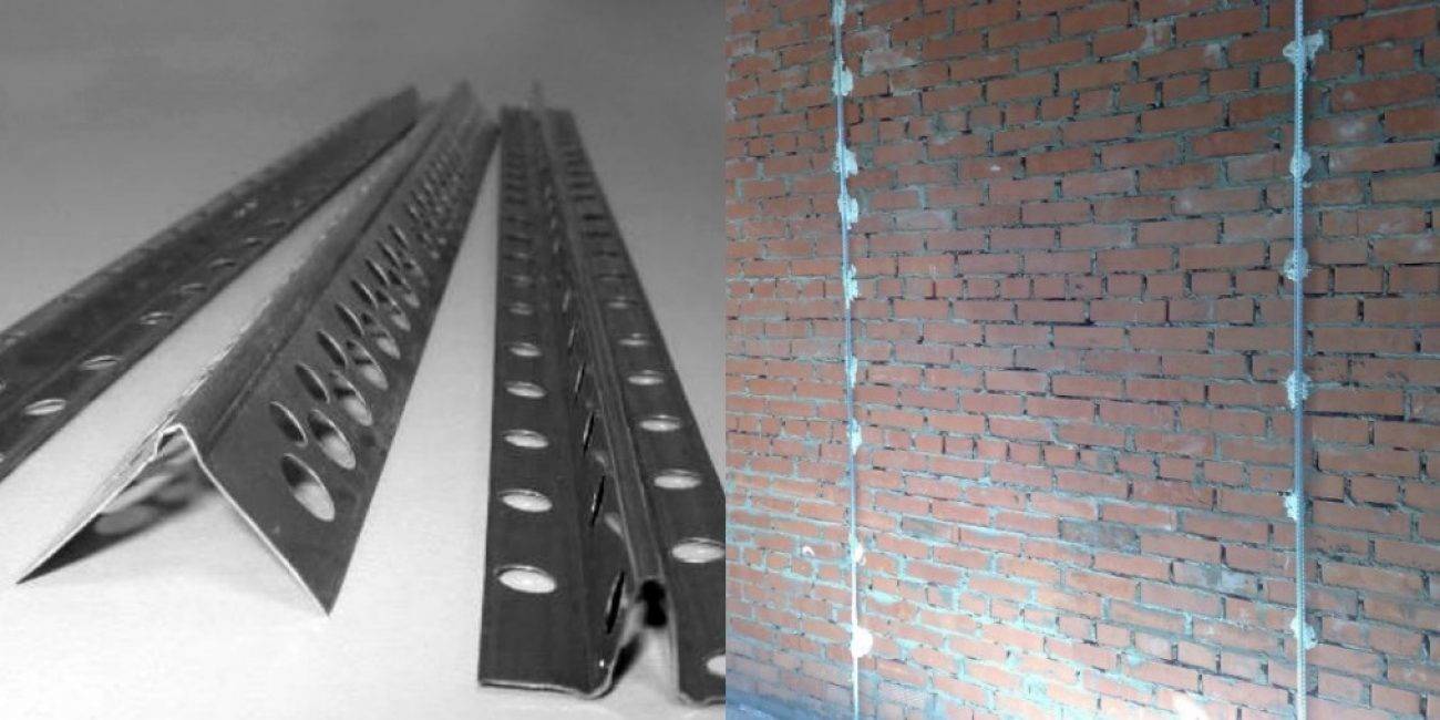 Для выравнивания и укрепления стыков стен изготавливают угловые маяки под штукатурку с полками, расположенными под 90°. При работе с ними нужно увеличивать число опорных точек и контролировать прямолинейность, так как изделия не отличаются жесткостью.