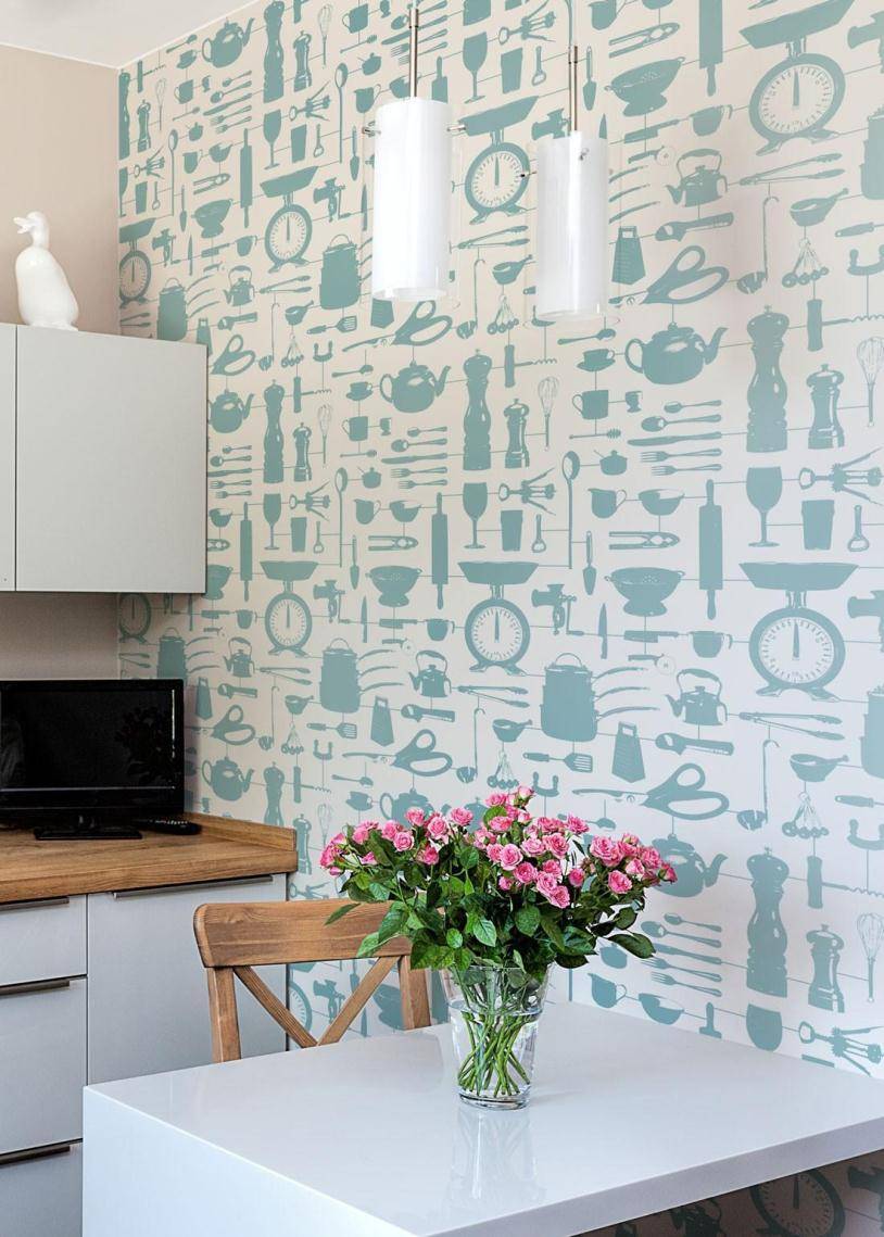 Функциональность. Главным критерием при выборе обоев для кухни, считается возможность их влажной уборки, а значит, самым удобным вариантом будут моющиеся шпалеры. Обычные водостойкие изделия не подойдут.