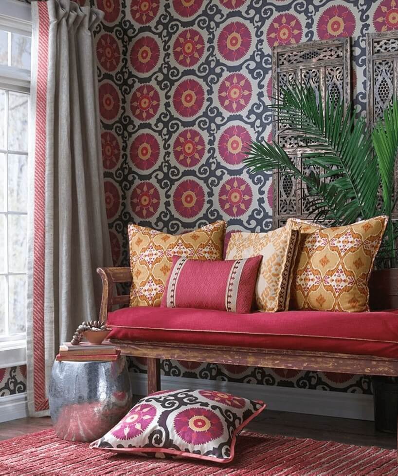 Для любителей экспериментов и смелых решений производители выпустили полотна с разноцветными геометрическими фигурами: ромбами, треугольниками и зигзагами. Стенка, оклеенная таким материалом, станет акцентом комнаты и будет привлекать к себе взгляды.
