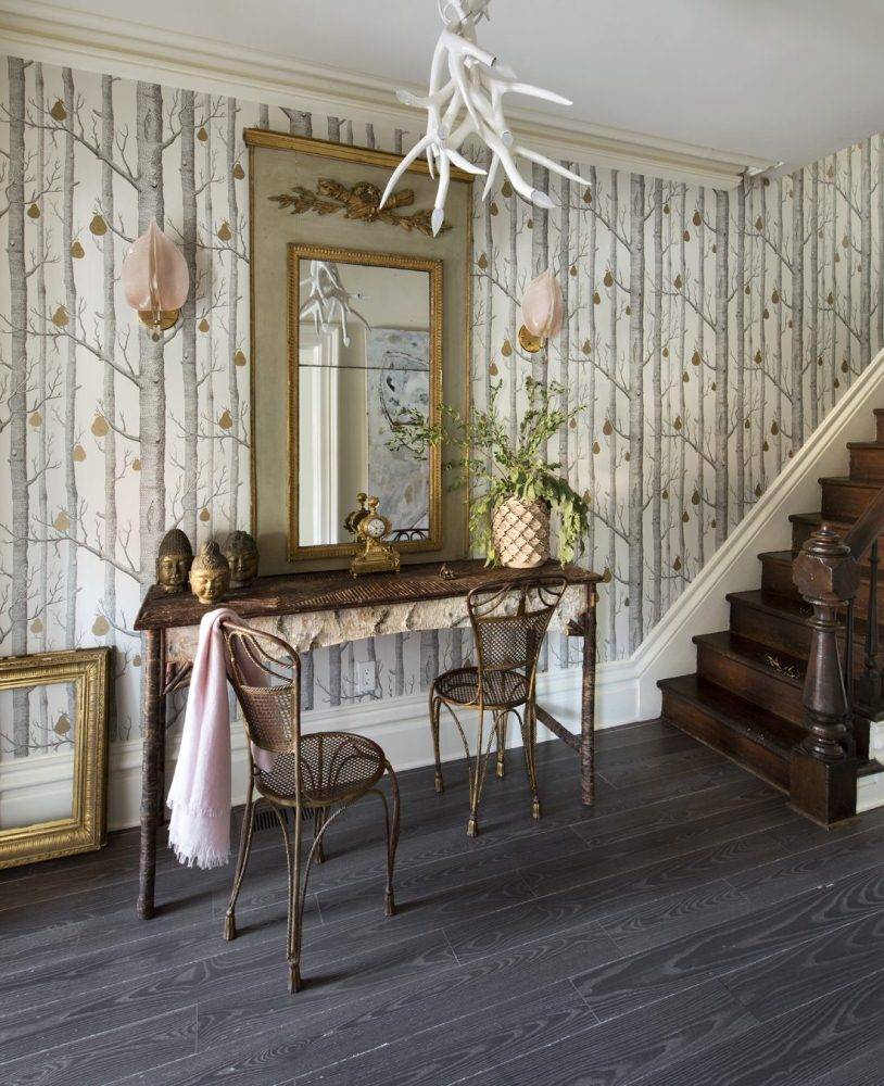 В прихожую предпочтительны жидкие, флизелиновые, виниловые и стеклообои светлых тонов.