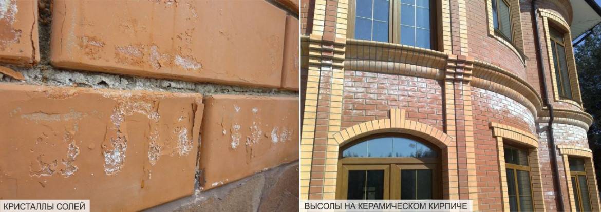 Для кирпича свойственно появление высолов, которые могут значительно ухудшить внешние характеристики строения.