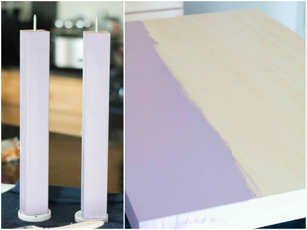 Итак, в начале работ вся мебель должна находиться в разобранном состоянии. В итоге у вас будет восемь ножек, две поверхности (одна квадратная, другая прямоугольная) и ещё одна прямоугольная поверхность для нижней полки.