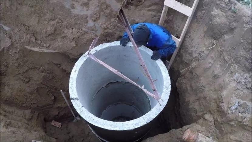 Диаметр ямы делают в соответствии с размером бетонного изделия. Когда установлено первое кольцо, внутри конструкции начинают выбирать грунт. Поскольку кольцо из бетона тяжелое, оно будет опускаться благодаря собственному весу. Постепенно изделие настолько опустится в углубление, что можно будет приступать к монтажу второго.