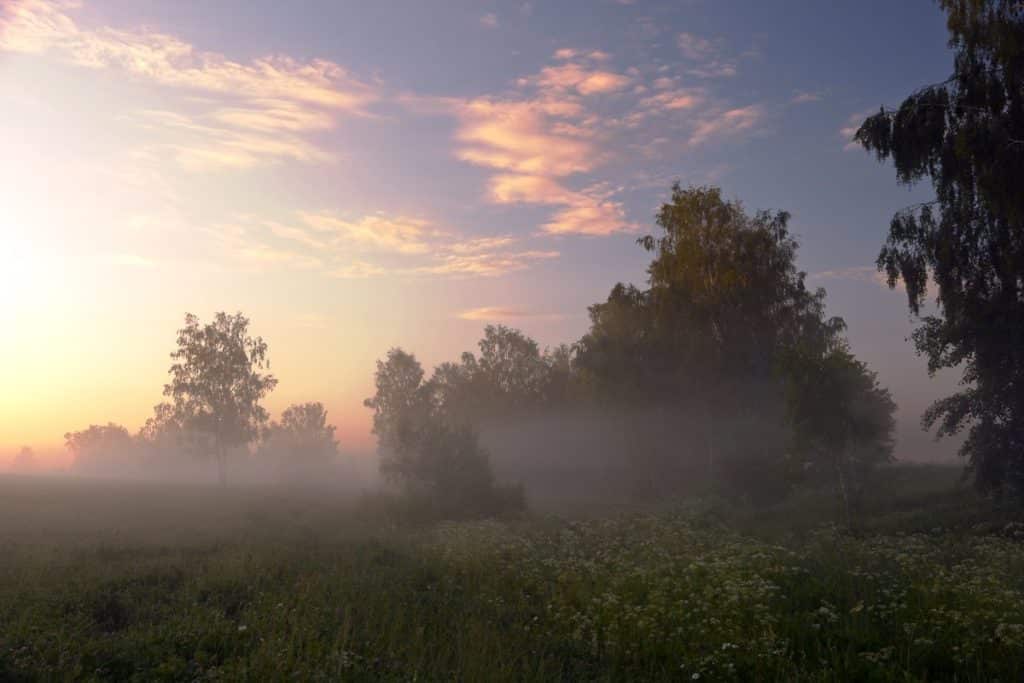 Туман в теплое время года образуется из-за испарения жидкости с поверхности земли. Определить возможный источник влаги можно по степени плотности дымки. На более сырых участках почвы образуются густые клубы, на менее влажных — легкие пары.