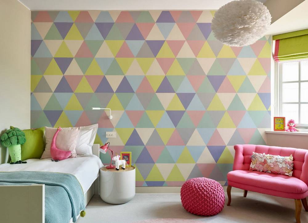 маскировка недостаток стен – на ровную стену стоит поклеить яркие пастельные полотна плотных обоев, например, флизелиновых, чтобы отвлечь внимание от дефектов;