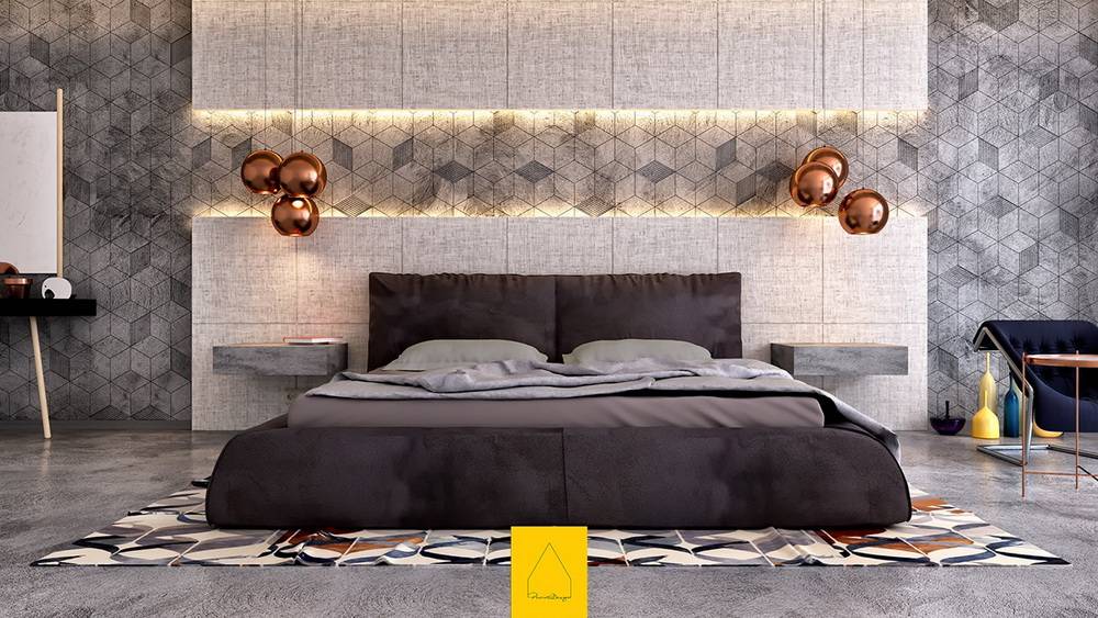 По второму пункту есть нюансы. Стандартом для спальни считается размещение акцентных обоев за кроватью. Часто это оправдано, но не всегда.