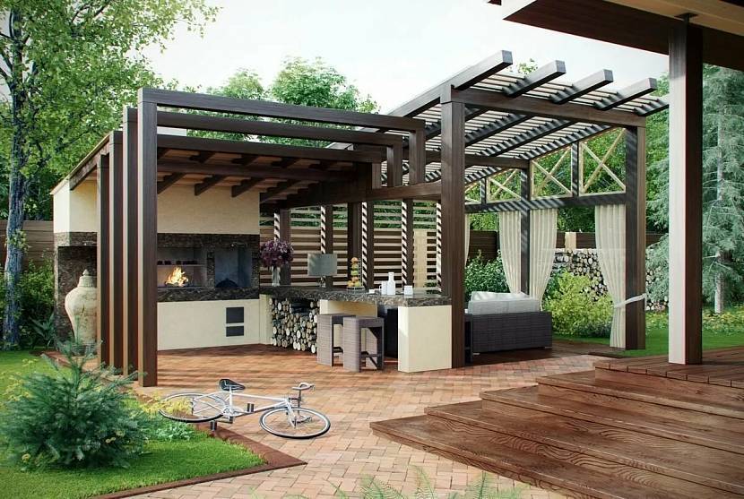 Изготовленные из них конструкции не испугаешь вылетевшим из жаровни угольком, что дало возможность архитекторам обустраивать в них настоящие летние кухни, которые назвать альтанкой можно только формально.