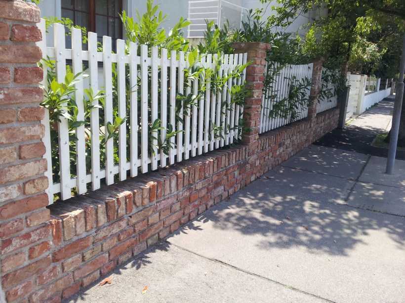 Кирпичная стена дешевле, и ее несложно выложить. Она стабильна и фундаментальна. Он способен дополнить и усилить общий архитектурный дизайн при использовании на других зданиях. Кроме того, такой забор подходит для различного декора: вы можете выбрать материалы из разных цветовых палитр, украсить место для ворот арками, небольшими башенками и колоннами.