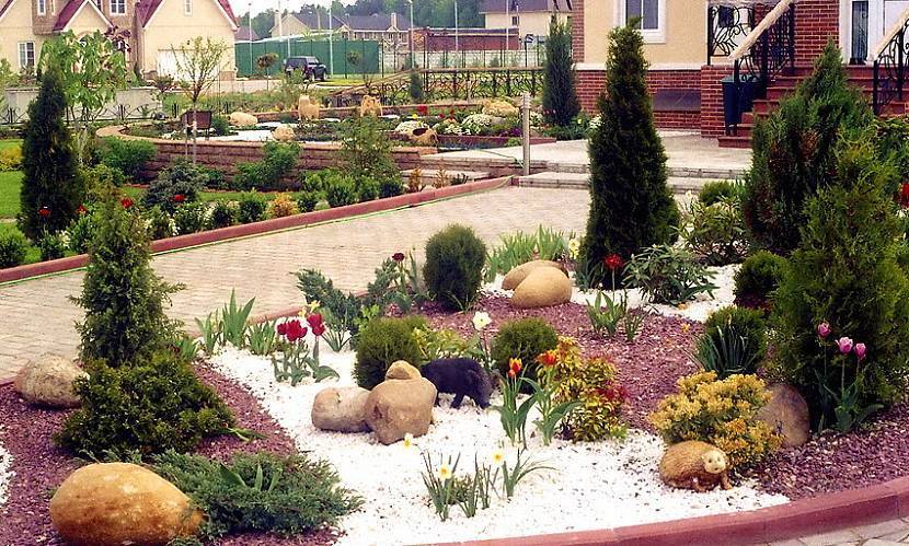 Альпийский. Здесь упор сделан на декоративную сторону. Чаще всего отдают предпочтение дикорастущим растениям, которые располагают в многоуровневых клумбах, дополняют галькой и камнями. По такой технологии высаживают и огородные культуры, что смотрится эффектно и необычно.