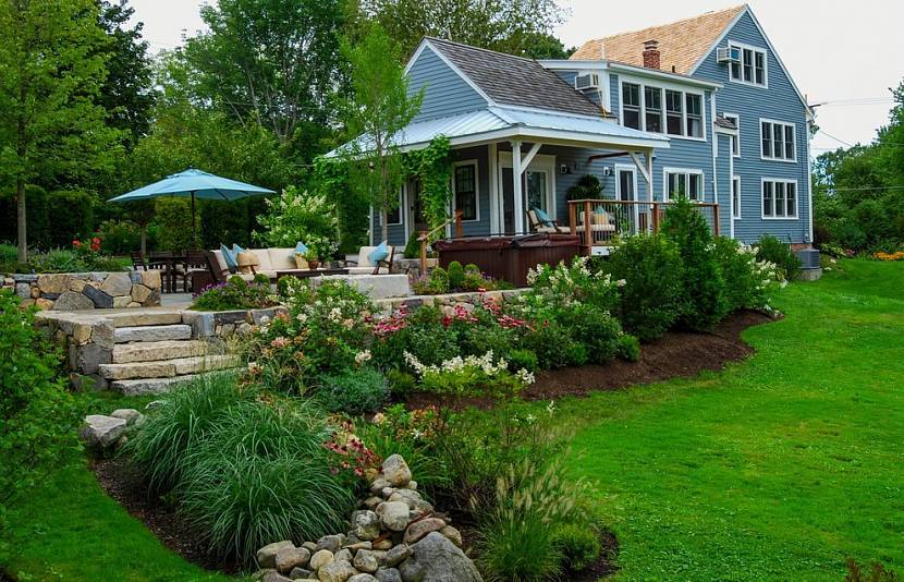 В отличие от французских, английские не требуют строгой симметрии. Основной упор в них делается на газонах, с помощью которых украшается участок. На фоне засеянной травы посадки даже обычных огородных растений выглядят декоративными культурами. По сути, это смесь огорода и цветника.
