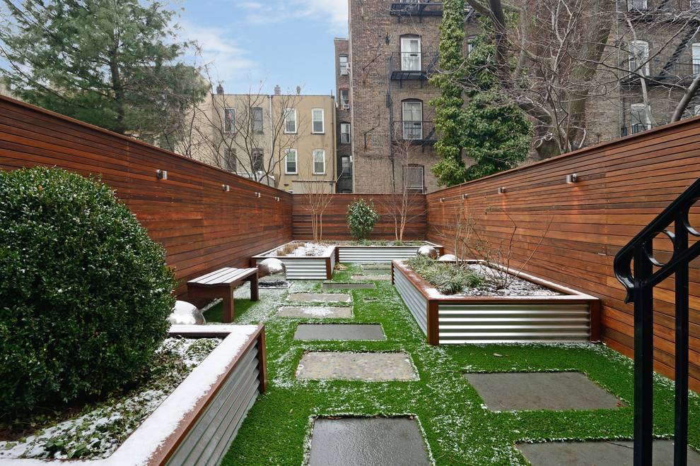 Современный. Это интересное направление, включающее несколько стилей, в том числе модерн, кубизм, минимализм. Для дорожек, террас и заборов подойдут бетонные или каменные плиты. Между собой клумбы обязательно должны быть на одном уровне, их предпочтительная форма — квадрат или круг. Главная задача этого стиля — продуманность мелочей и чёткая геометрия.