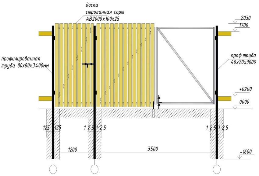 Схема обустройства ворот из профнастила