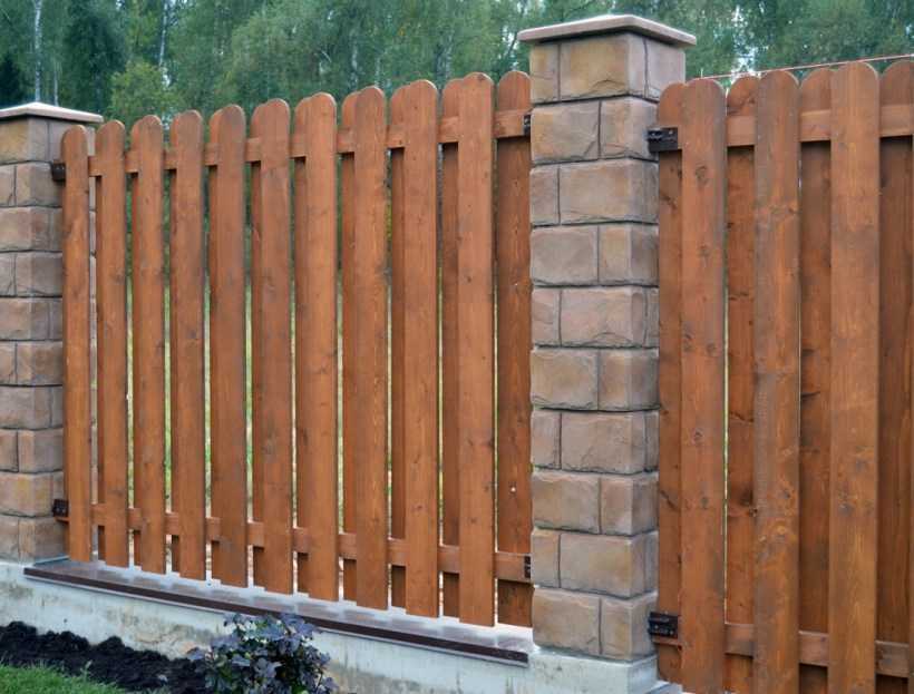 Сделать столбы для забора можно из бетона или дерева, в зависимости от материала для секций. Главное – грамотно их заглубить, чтобы конструкция оказалась прочной и устойчивой.