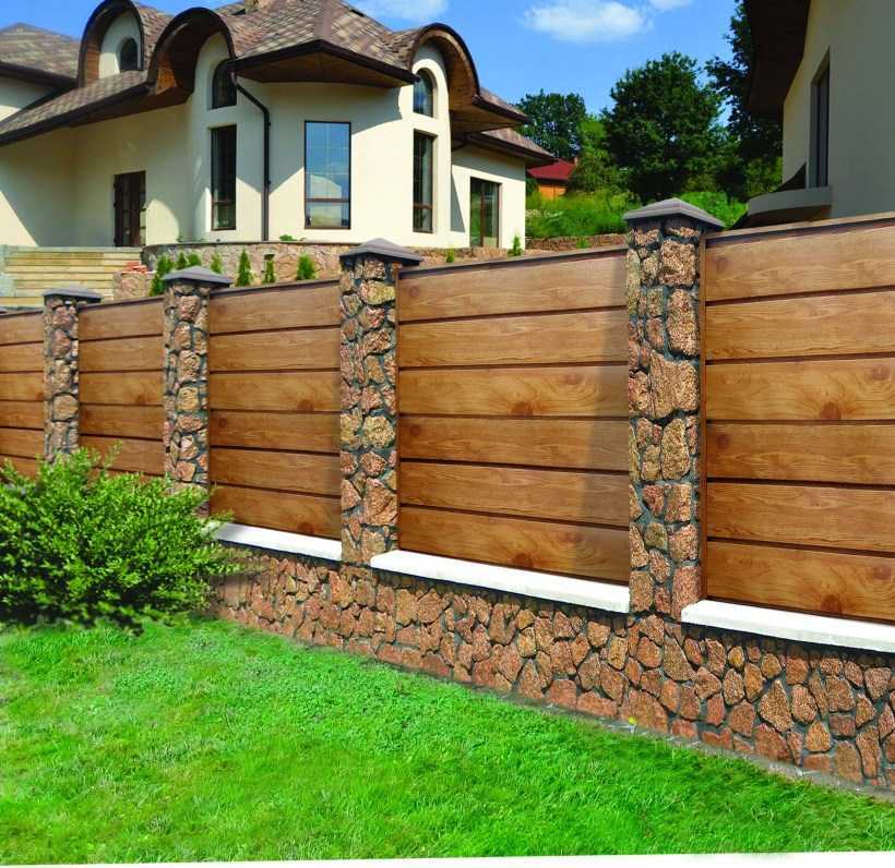 Комбинации различных строительных материалов при изготовлении забора вокруг территории частного дома могут дать отличный результат. Вместе они создают прочное и долговечное ограждение с уникальным внешним видом.
