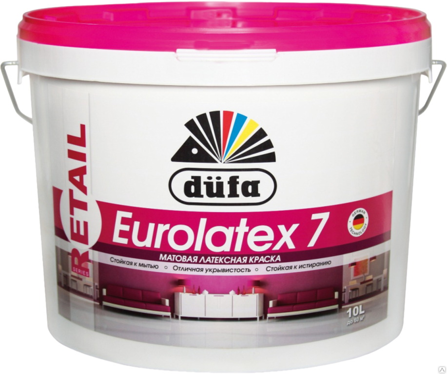 Матовая латексная краска Дюфа для стен и потолка разработана для проведения внутреннего ремонта. Благодаря устойчивости к механическому воздействию краска пользуется повышенным спросом. Экономная в расходе, с высокими характеристиками супервайс краска используется на кухне, в ванной комнате и других жилых помещениях.