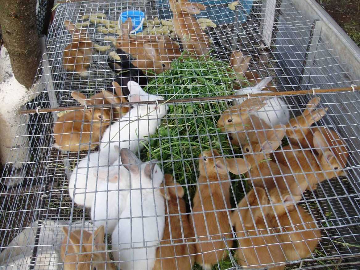 - Совсем маленьких крольчат обычно временно содержат в одной клетке по 5-25 голов. Когда молодняк подрастает (до возраста около3 месяцев), то в одной клетке размещают до 5 особей.