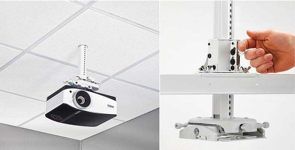 Поверхность потолка – оптимальный вариант для установки проектора в любом помещении. При этом обеспечивается максимальная свобода при определении места для монтажа мультимедийной системы. А чтобы дорогостоящее оборудование было надежно закреплено, существует прочное и удобное приспособление – потолочный кронштейн для проектора.