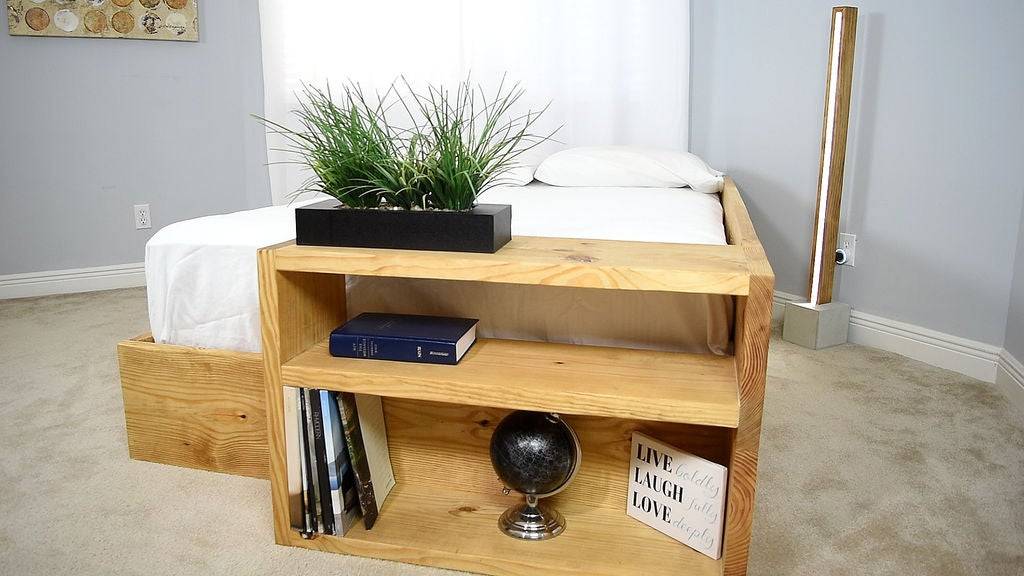 Такой вариант мебели, как выдвижная кровать-тахта, сделанная своими руками, отлично подойдет семье, где двое ребятишек. Для этого понадобятся два прочных каркаса подходящего размера (кстати, можно использовать старые односпальные кровати или диваны. Или смастерить каркасы из деревянных брусков.