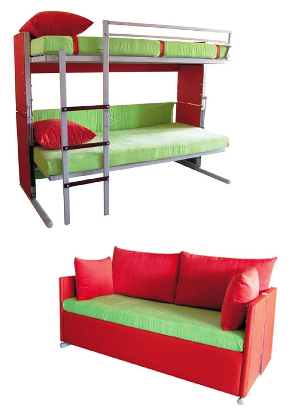 Учитывая острую необходимость в свободном пространстве производятся разнообразные модели двухместных трансформеров: от образцов, в которых выдвигаются ниши для матрасов, до двухъярусных кроватей.