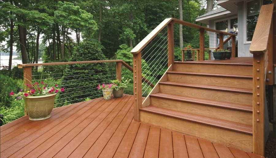 Крыльцо с навесом будет защитой, к тому же прослужит дольше. Длительности срока службы будет способствовать правильная технология возведения и своевременный уход за конструкцией. Например, соблюдение технологии возведения предотвратит в дальнейшем прогиб досок и проседание лаг.