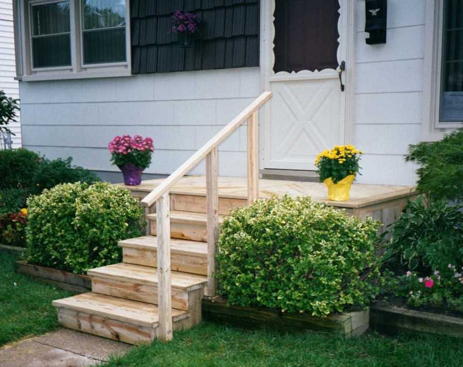 Если лестница крылечка включает одну-две ступени, перила можно не монтировать. Если ступеней больше, перила обязательны, они должны соответствовать общему оформлению конструкции.