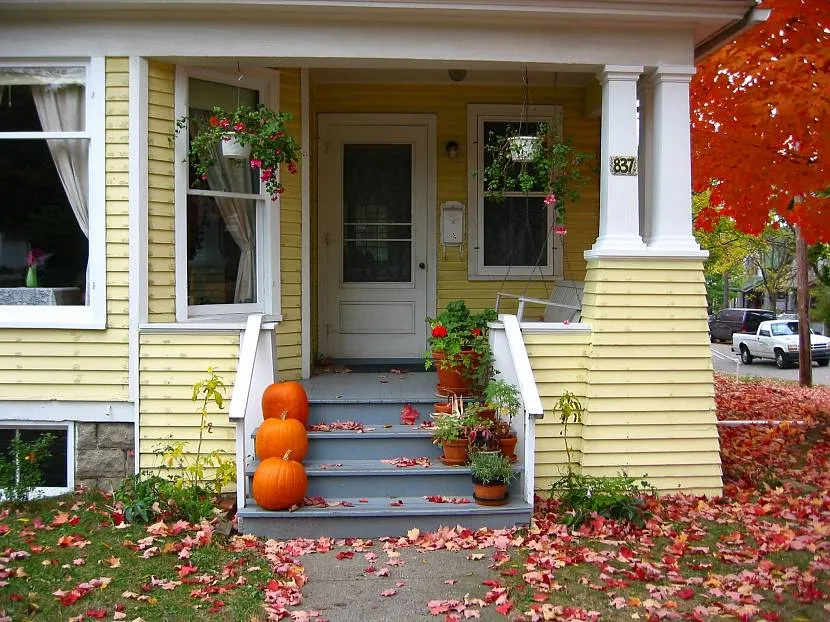 От атмосферных явлений крыльцо защищается индивидуальной крышей и боковыми стенками из дерева, металла, стекла, пластика. Вьющиеся растения украшают крыльцо летом, создавая уют и хорошее настроение.