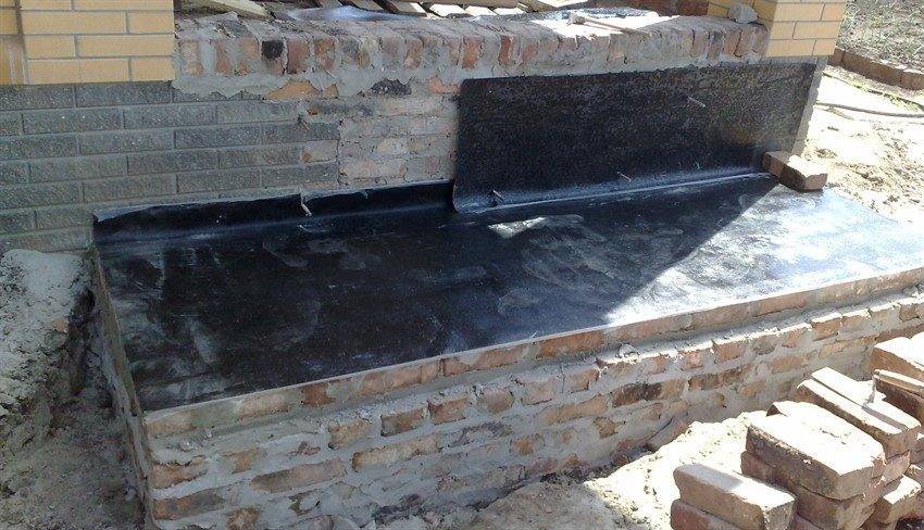 Верх основания покрывается слоем гидроизоляционного материала. Рекомендуется дополнительно изолировать стену здания, примыкающую к крыльцу.