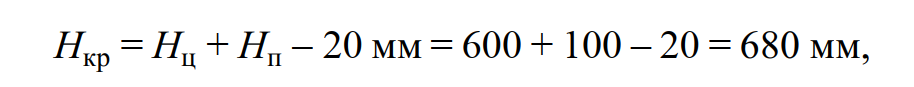Нкр = Нц + Нп – 20 мм = 600 + 100 – 20 = 680 мм,