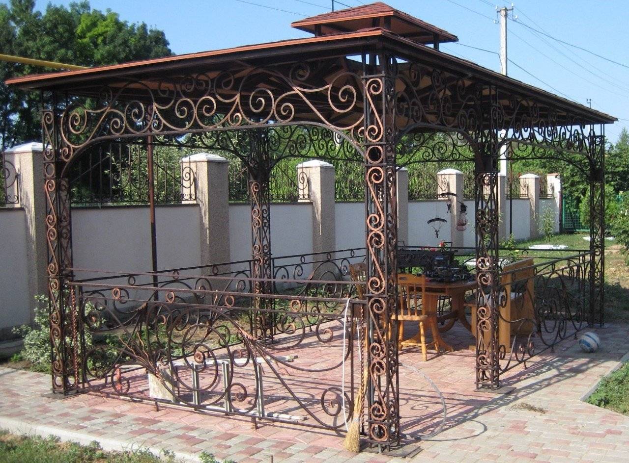 Изящная кованная беседка открытого типа