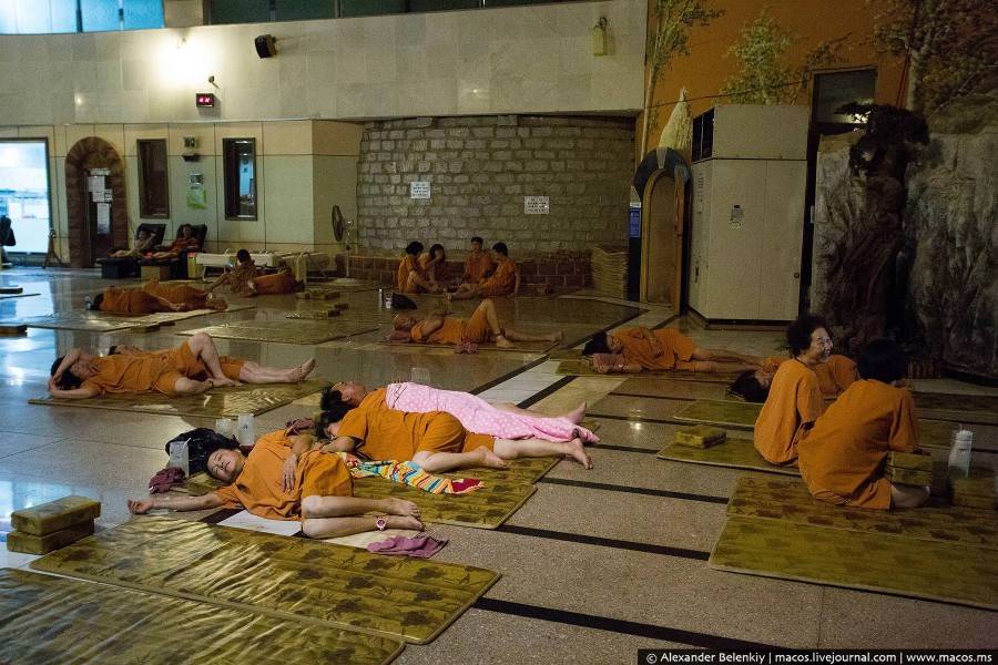 Корейцы – люди стеснительные. Потому первые общественные бани открыли всего лет сто назад. Зато сейчас есть даже банные туры в Сеул. Чаще всего туристы ходят в Чимчильбан. Местоположение возле продуктового рынка никого не смущает. Здесь можно провести всю ночь и даже поспать, экономя на гостинице.