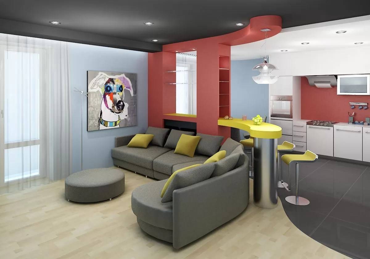 Общее пространство кухни-гостиной делят на функциональные зоны.