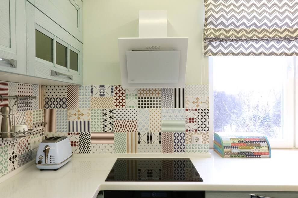 Хорошо подходит тесной кухне и керамика: для фартука лучше выбирать гладкие варианты (они легко моются и отражают свет), а для пола – шероховатые, нескользящие.