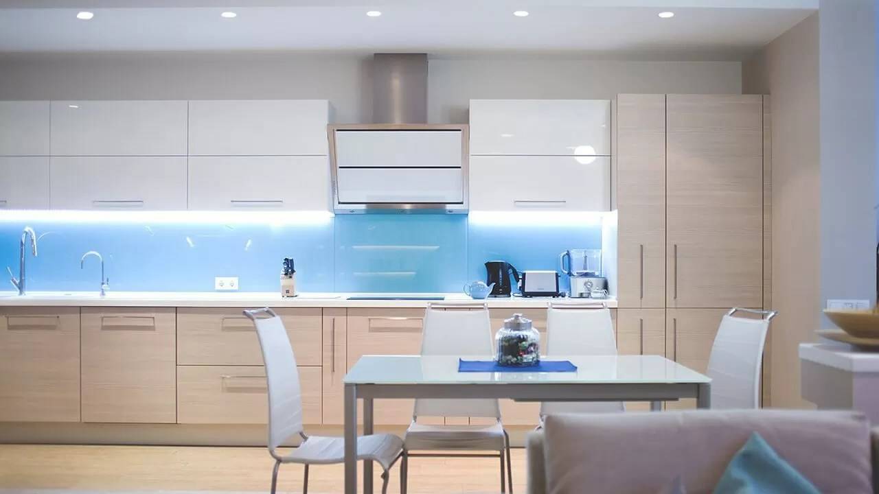 Рабочей зоне лучше подойдет нейтральный и теплый белый свет: 3500-5000 К. Для освещения обеденного стола или зоны, где вы планируете расслабиться за любимым занятием, подойдут более теплые цвета: 2700-3500 К.