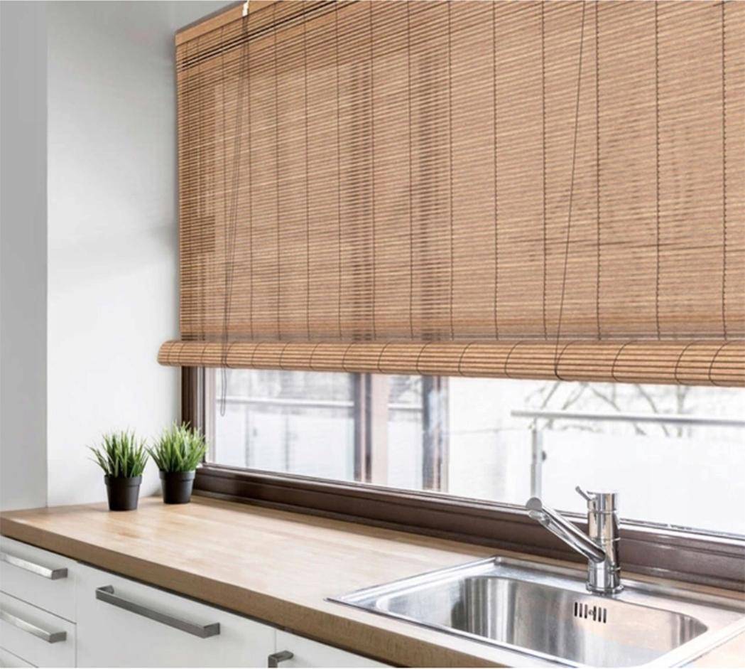В целом, тесным кухням хорошо подходят жалюзи, рулонные и римские шторы, короткий тюль. Хороший вариант – бамбуковые шторы: они особенно уместны в скандинавском интерьере, где ценится экологичность.