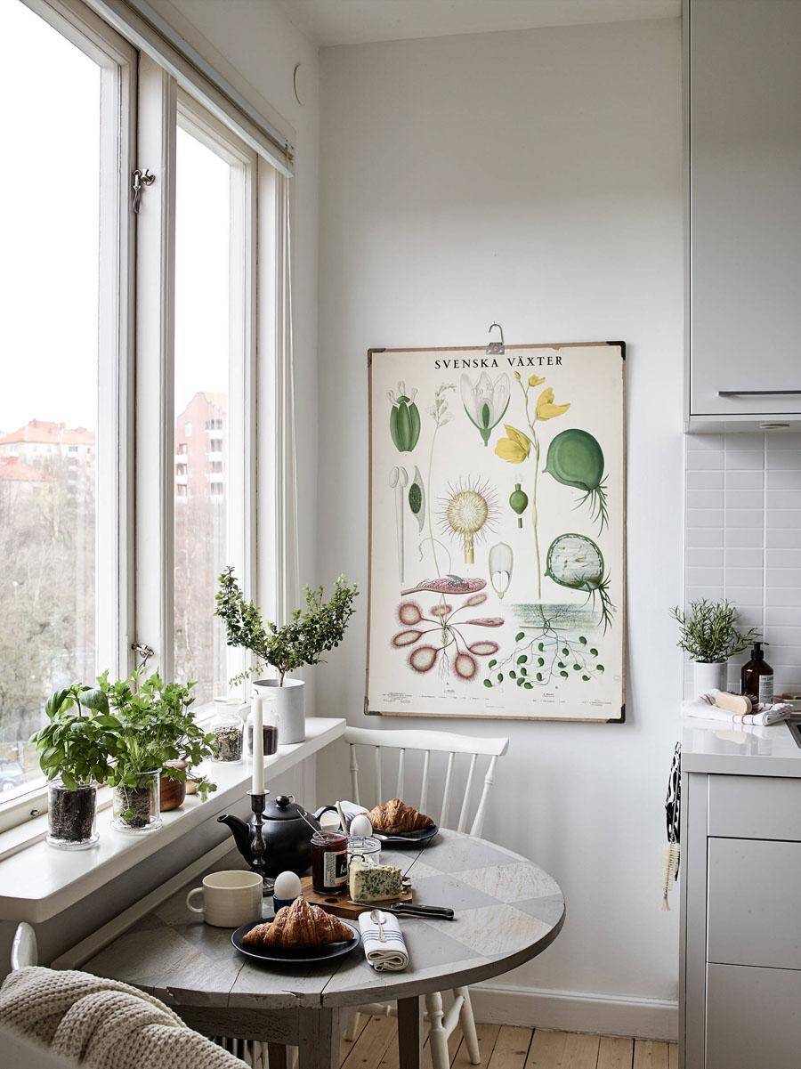 Если вариант замены обеденного стола на стойку или полуостров вас не устраивает, установите небольшой круглый или квадратный столик, максимум 80 см шириной. За ним хватит места для двоих.