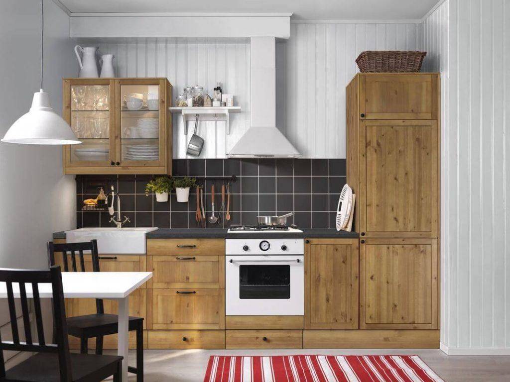 - Настоящей проблемой для маленькой кухни может стать то, что большинство уже готовой фабричной мебели может просто не поместиться в комнате. Разумеется, в таком случае можно попробовать сделать мебель на заказ, но это довольно дорогостоящая услуга. В таких случаях можно приобретать шкафы отдельно и собирать их самостоятельно. Очень удобно использовать выдвижные вертикальные полки.