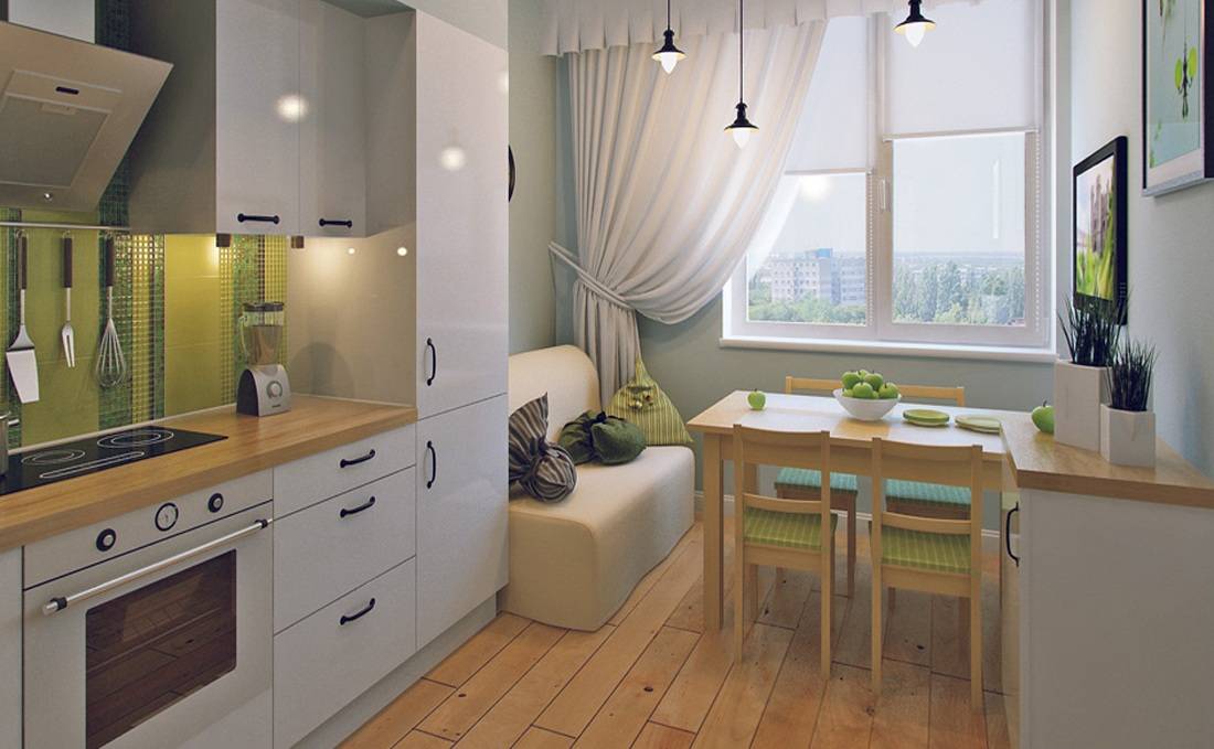 В зависимости от имеющейся мебели можно успешно оптимизировать пространство на маленькой кухне.