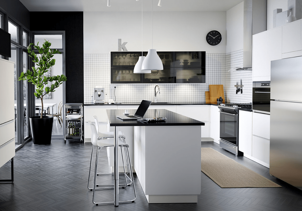 Если геометрия кухни позволяет, очень советуем барную стойку, они в моде уже так давно, что скорее всего из неё и не выйдут. Можно сделать её широкой и получится барный стол, там выше материал с кучей подробностей, в рамках этой статьи про барную стойку информация уже не влезет.
