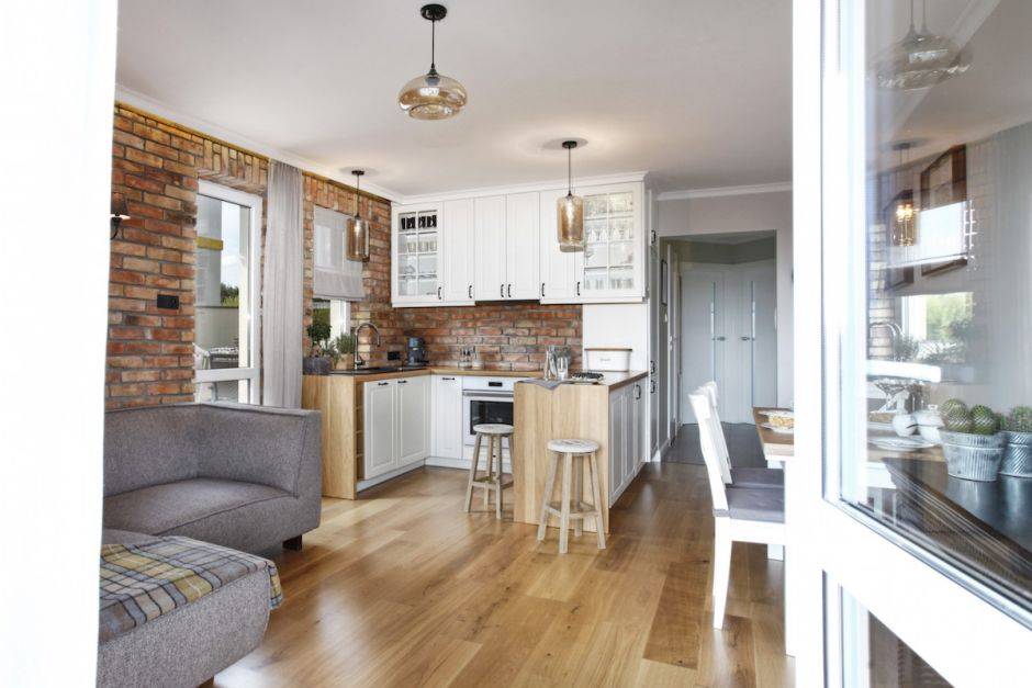 Брутальный индустриальный стиль характеризуется использованием грубых фактур и темных оттенков. Для маленькой кухни это не подходит. Но можно выбрать современный лофт как вариацию минимализма с доминированием светлого серого, имитацией восстановленных фабричных светильников и других декоративных элементов.