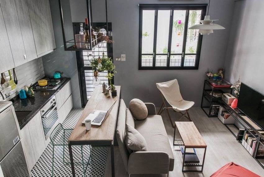 Главной особенностью миникухни для студии является отсутствие стены между ней и остальной частью квартиры.