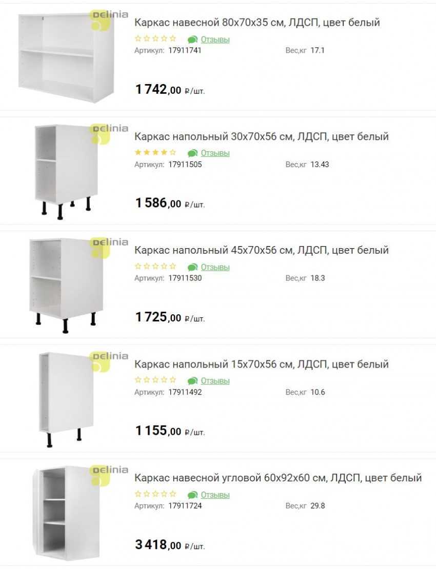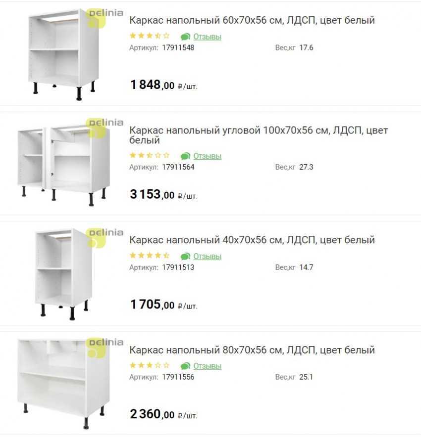 - Всё необходимое в одном месте. В магазине вы можете приобрести не только гарнитур, но и сантехнику, раковину, смеситель и даже такие кухонные принадлежности, как разделочная доска, подставка для посуды и т.п. Оформив доставку, уже на следующий день сможете получить готовую кухню, которой после сборки можно свободно пользоваться. Кстати, собрать гарнитур легко и самостоятельно, т.к. каждый шкаф упакован в свою коробку, а к товару также прилагается подробная инструкция.